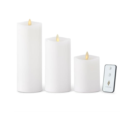 Set/3 White Luminara Pillars w/ remote