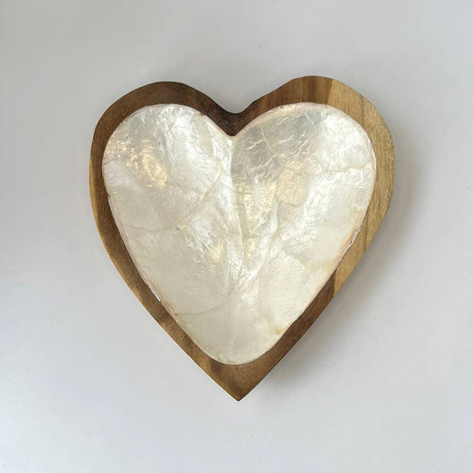 Teak Wood Heart Dish w Abalone Inlay