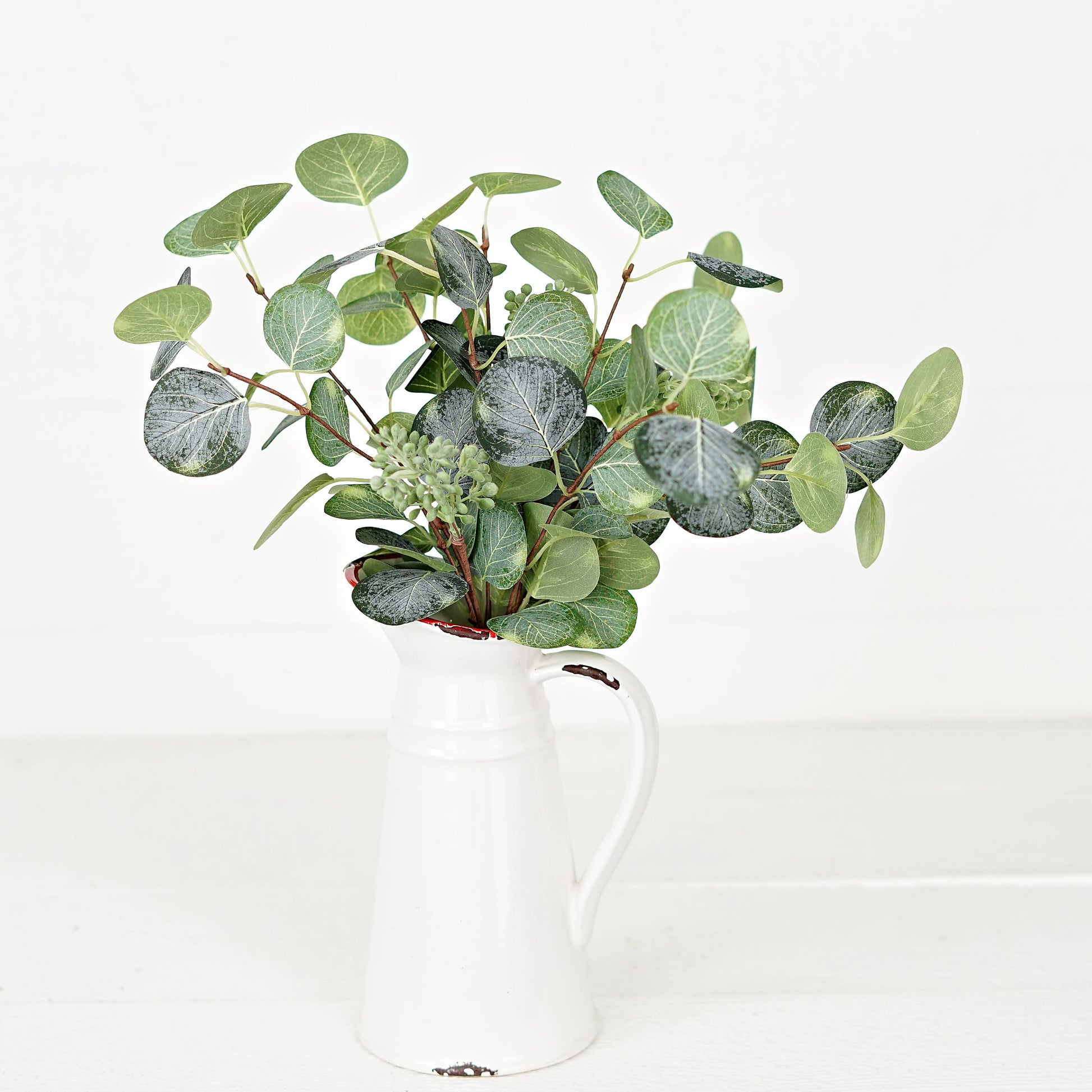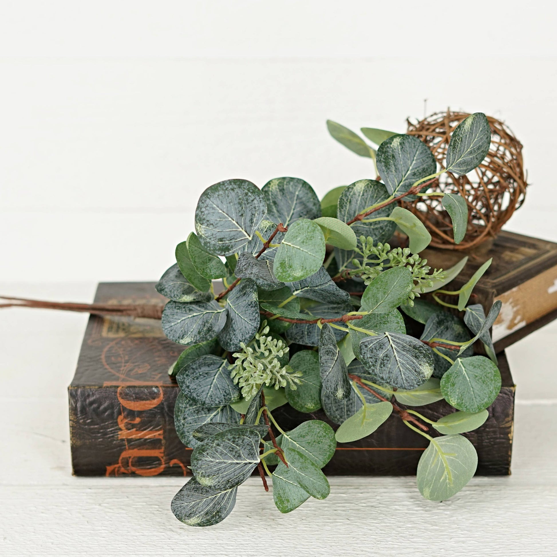 16in Bush of Flocked Silk Screen Silver Dollar Leaves, Spring floral, Everyday Floral, Farmhouse Decoration