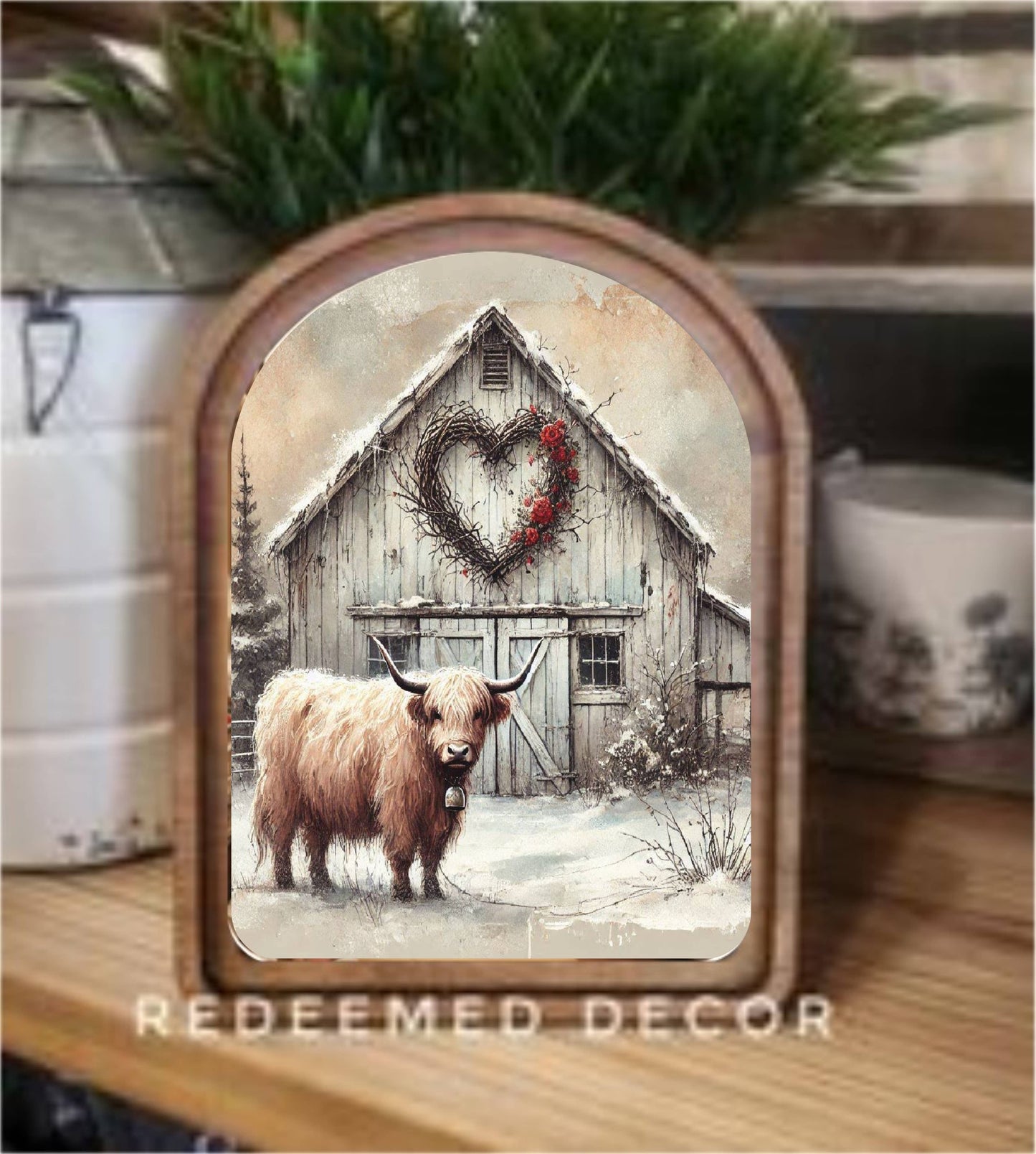 Arch Top Valentine Highland Barn Framed Art