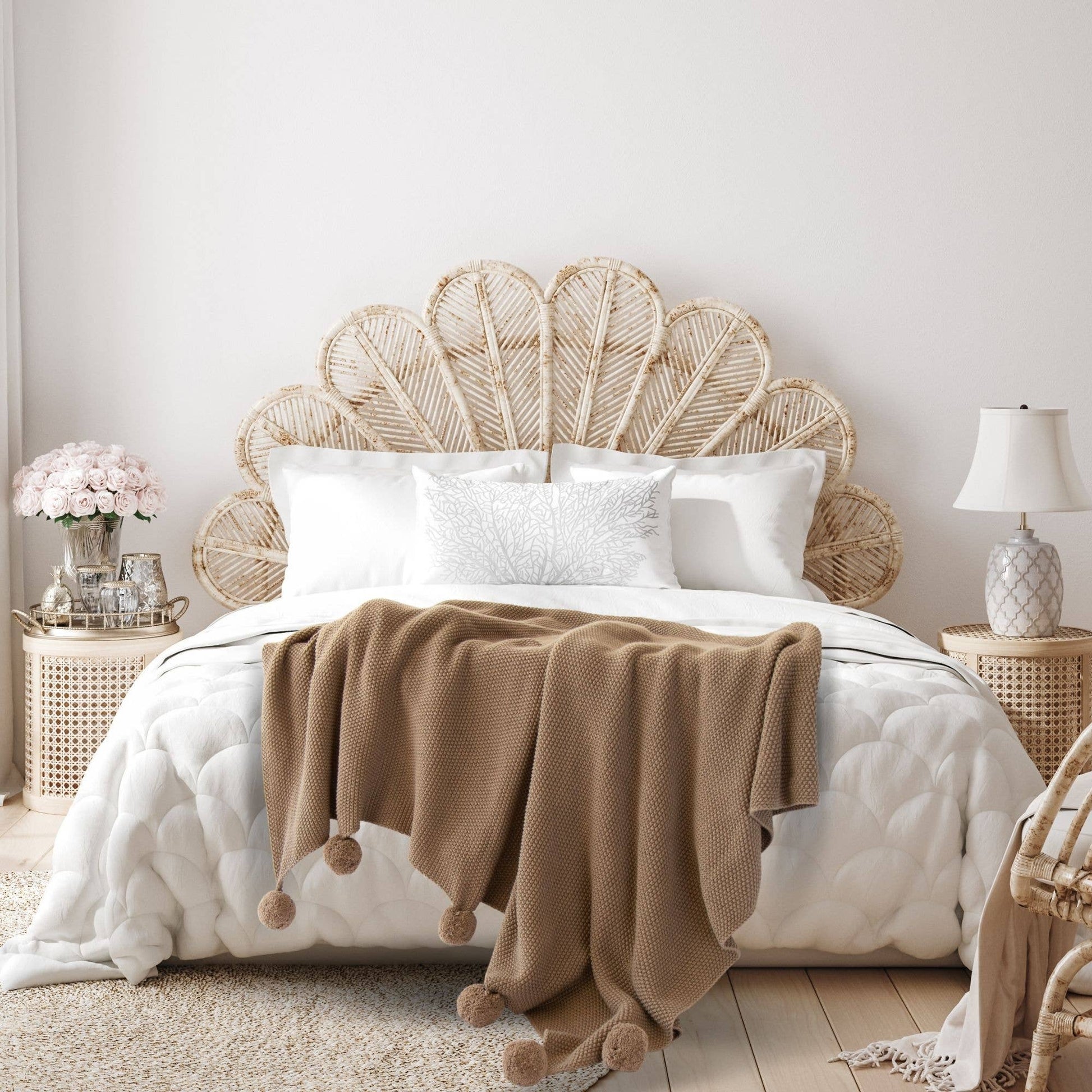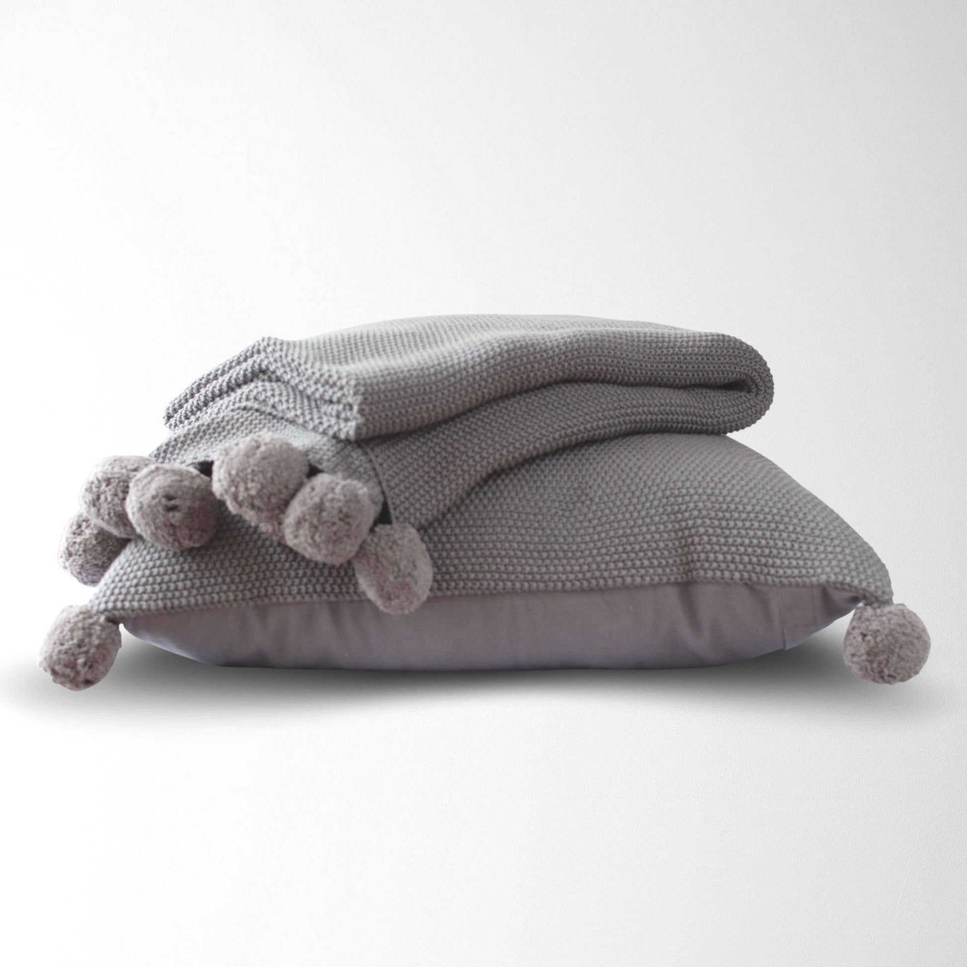 Aria Cotton Seedstitch Throw with Pompoms: Mushroom