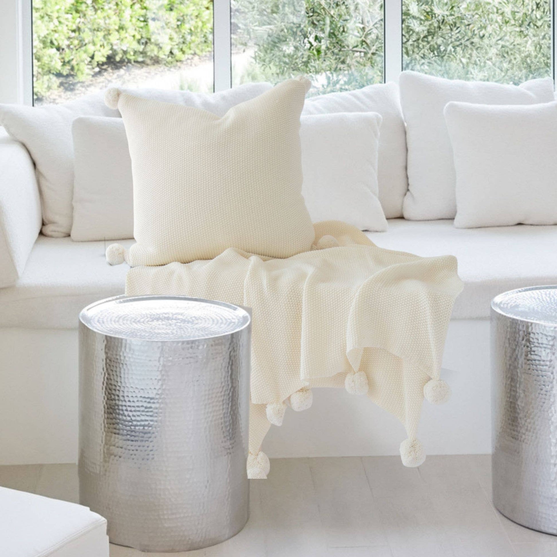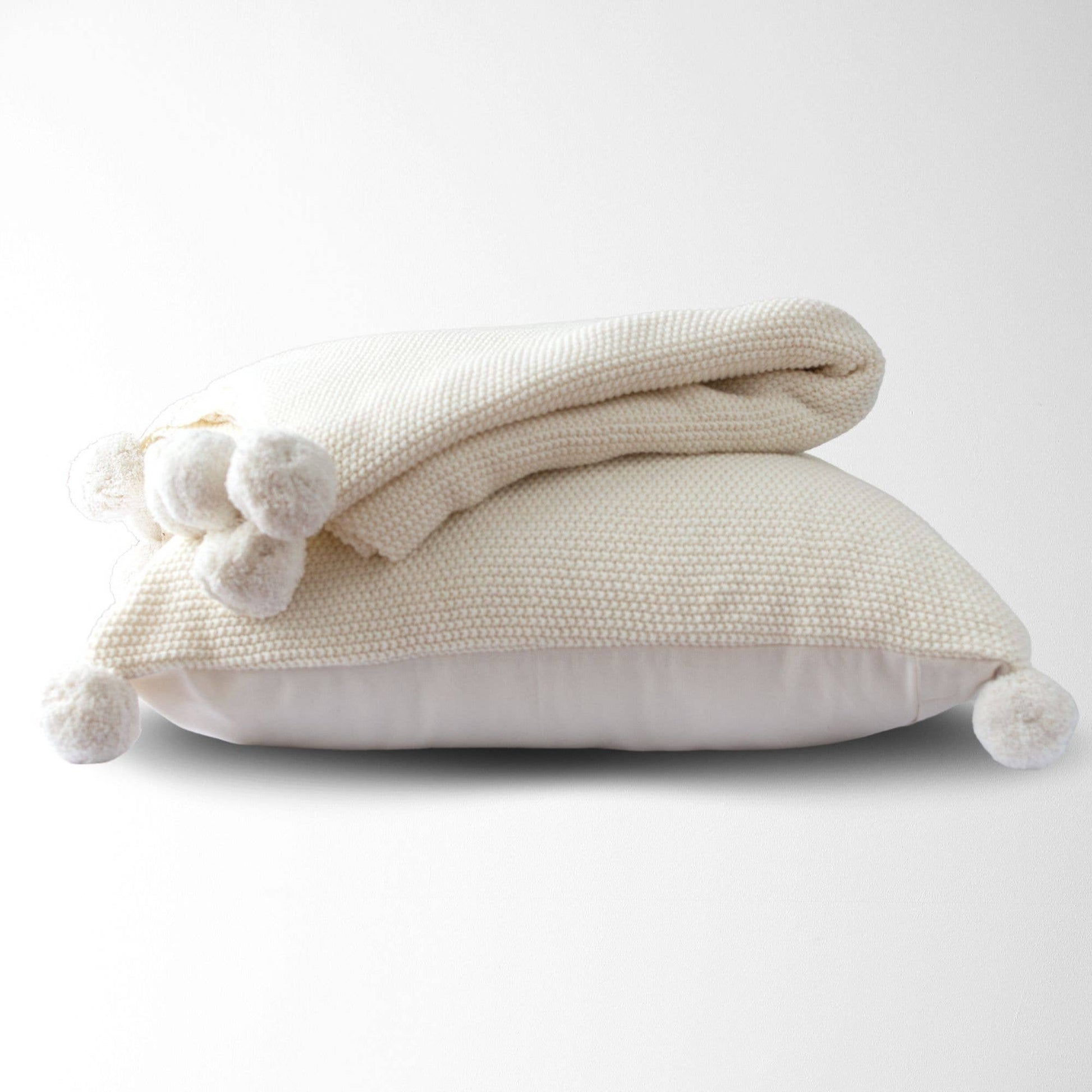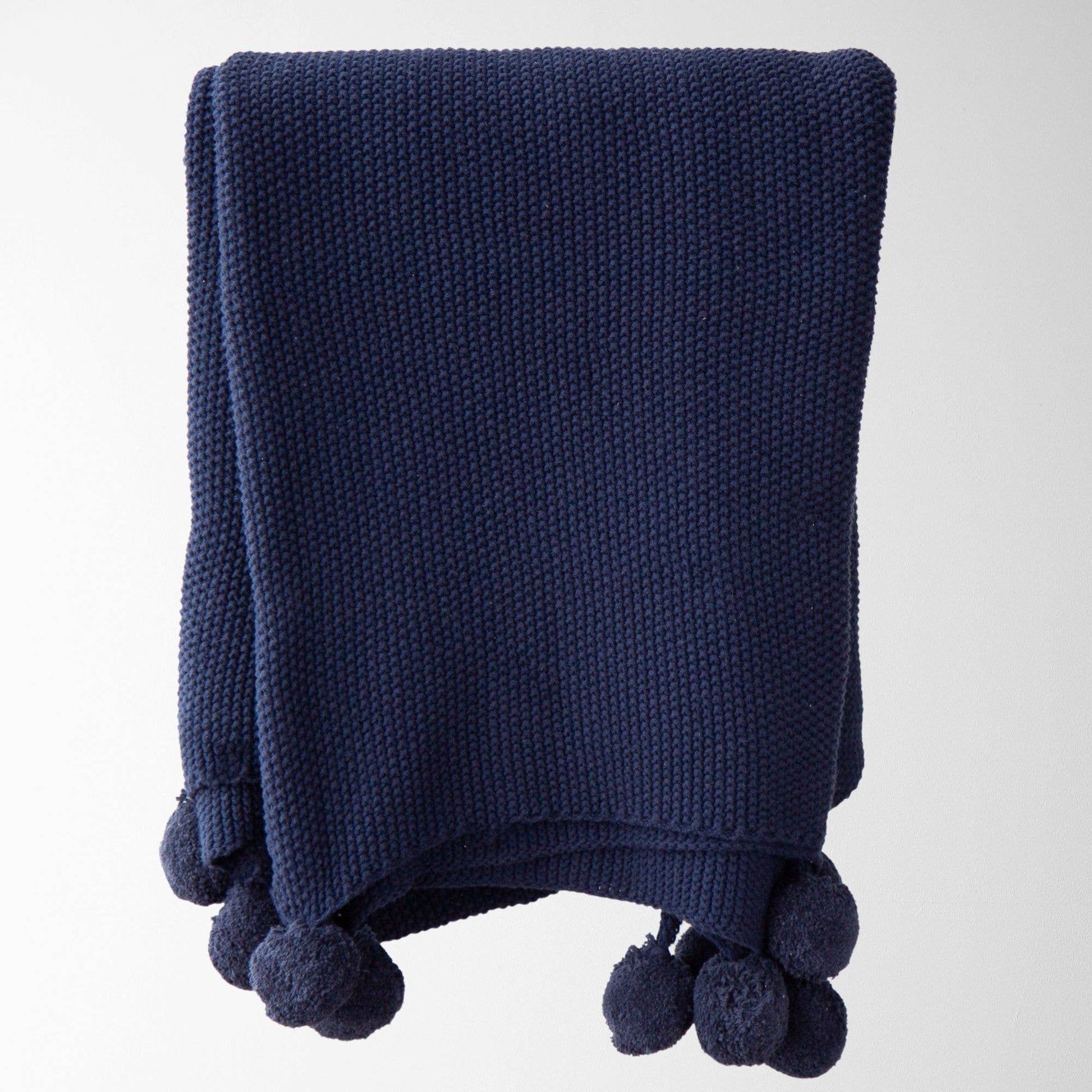 This cotton knit throw is a seed stitch knit - a timeless and classic form of knitting that alternates purl stitch and knits stitch to create a texture that looks like seeds. It is finished with cotton knit pom-poms. This is a lightweight all-season throw. It is yarn-dyed for lasting rich color. It is machine washable and of heirloom quality, certain to become a favorite go-to throw time and time again - not just beautiful to look at with a fabulous drape but also soft to the touch and lightweight for that perfect cozy vibe. A matching pillow is available.