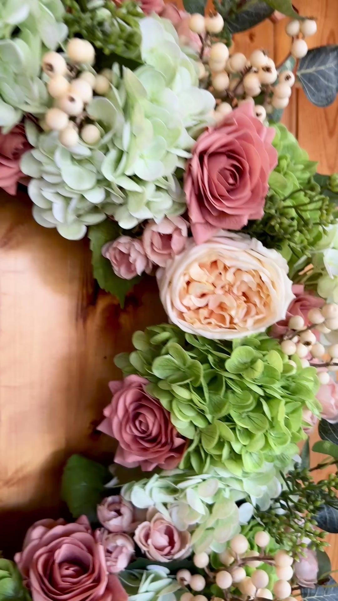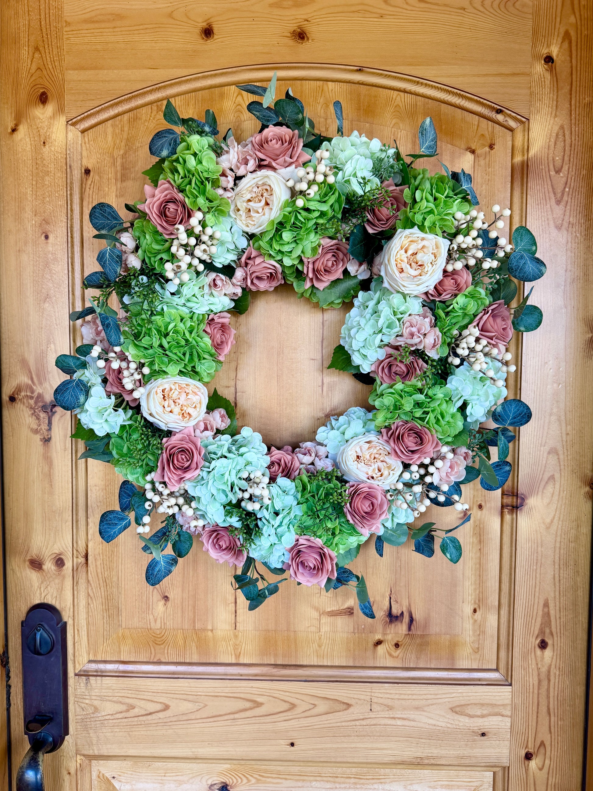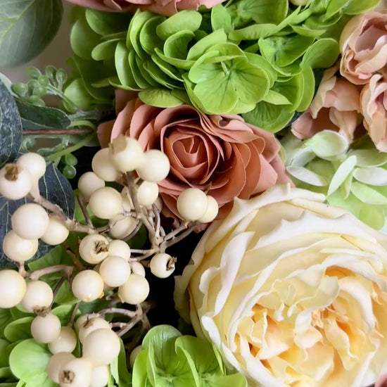 Custom Real Touch Hydrangea, Rose & Berry Wreath