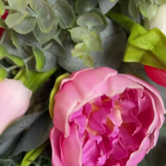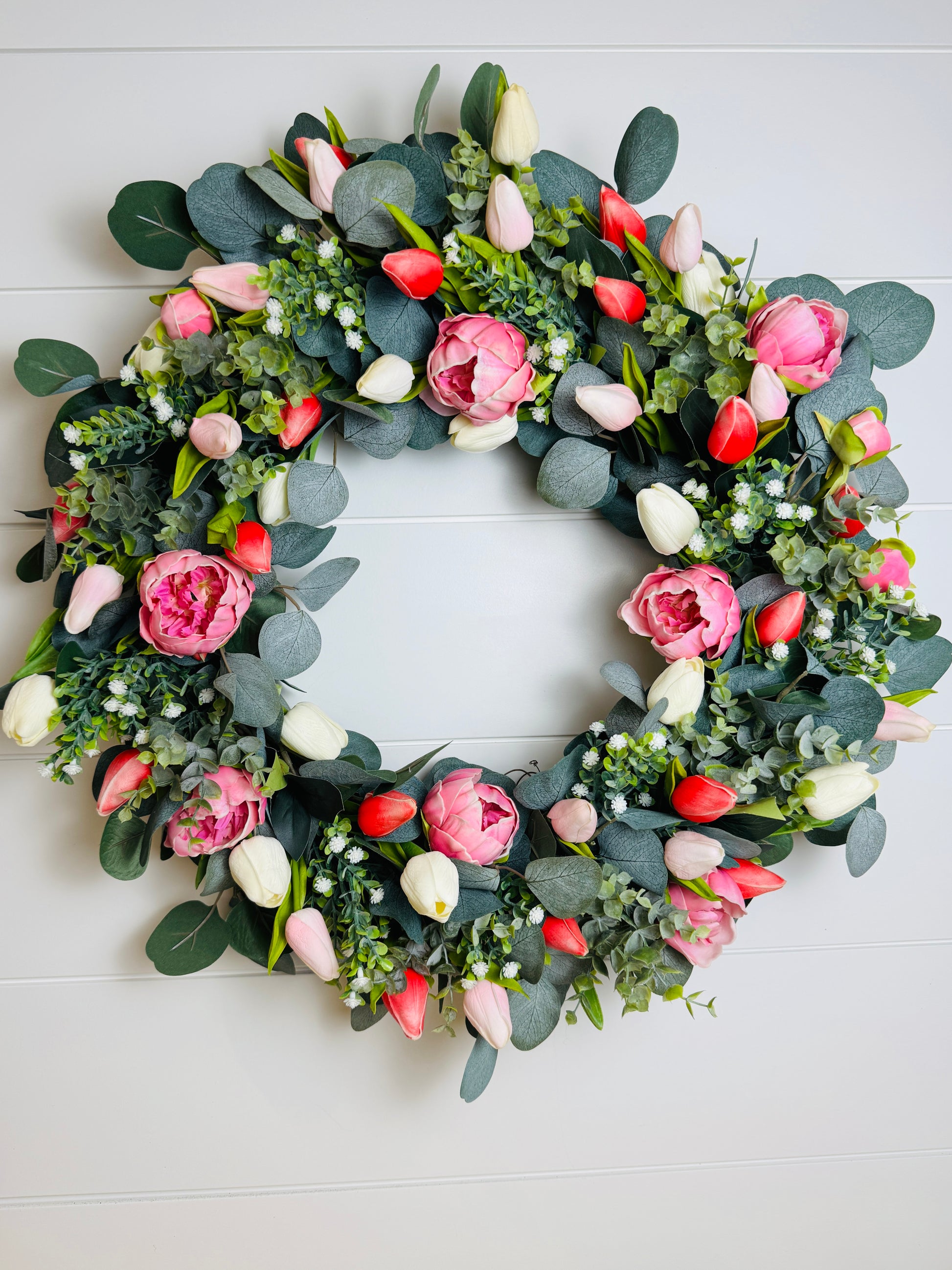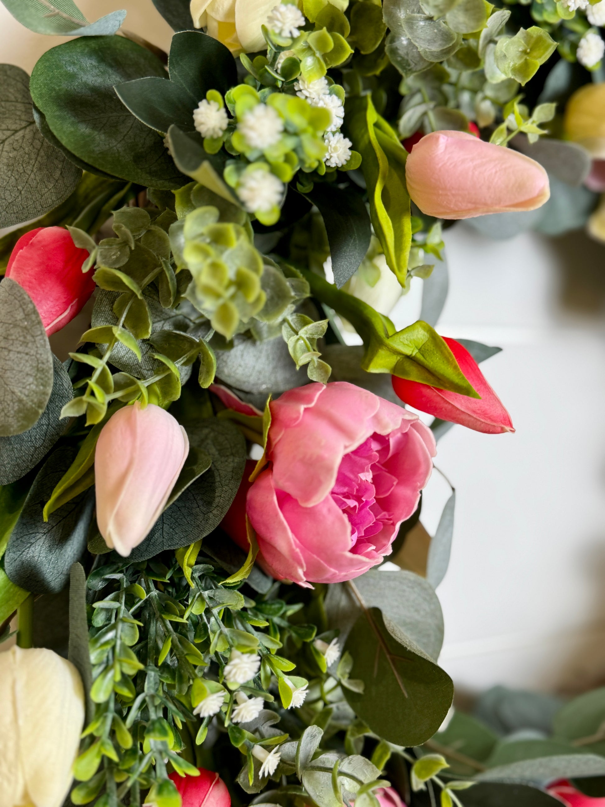 Custom Real Touch Tulip & Peony Wreath - Pink