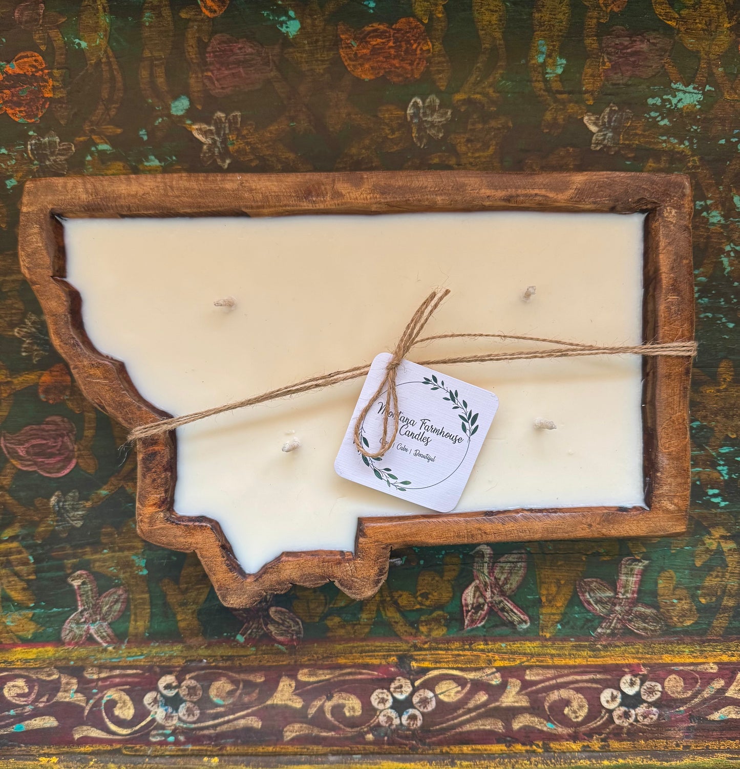 Approx. 32 ounce candle in this gorgeous wooden MT shaped bowl