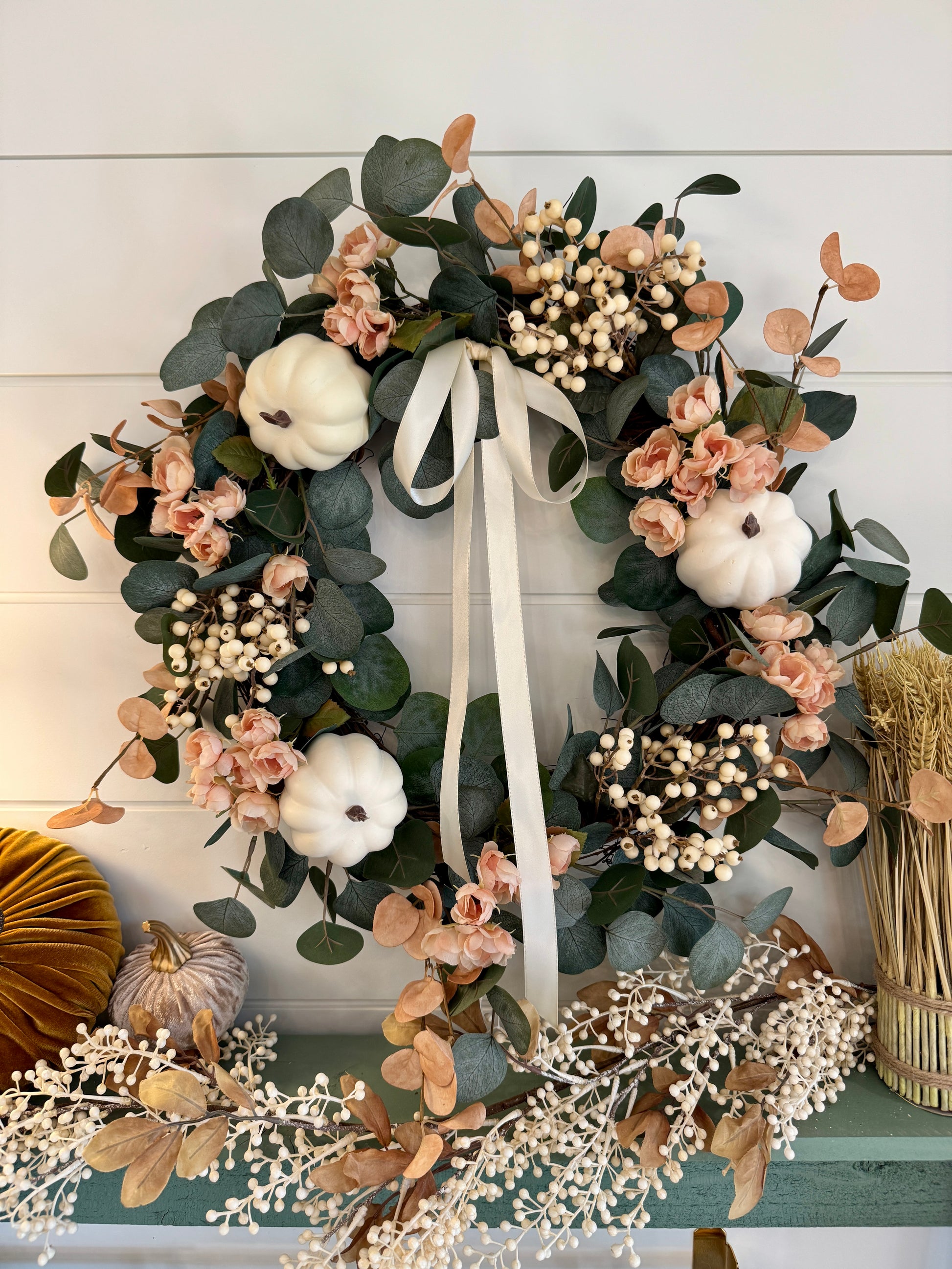 Neutral Autumn Blush Pumpkin Wreath