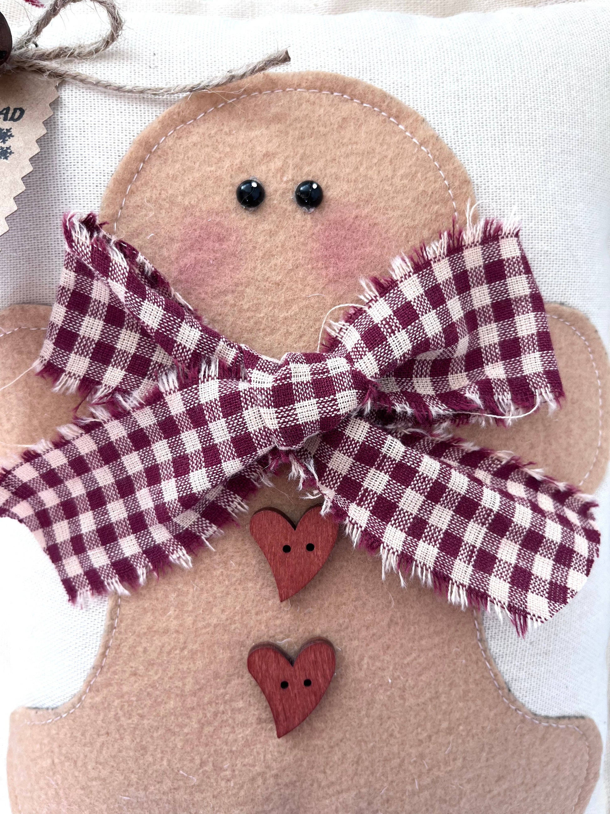 Our sweet Gingerbread pillow home decor is right on trend, in neutral colors to match any decor. Perfect for farmhouse hutches, cottage decor, rustic, vintage and primitive styles. Each is handmade in the USA, and is unique. Measures approx: 8.5" x 11"