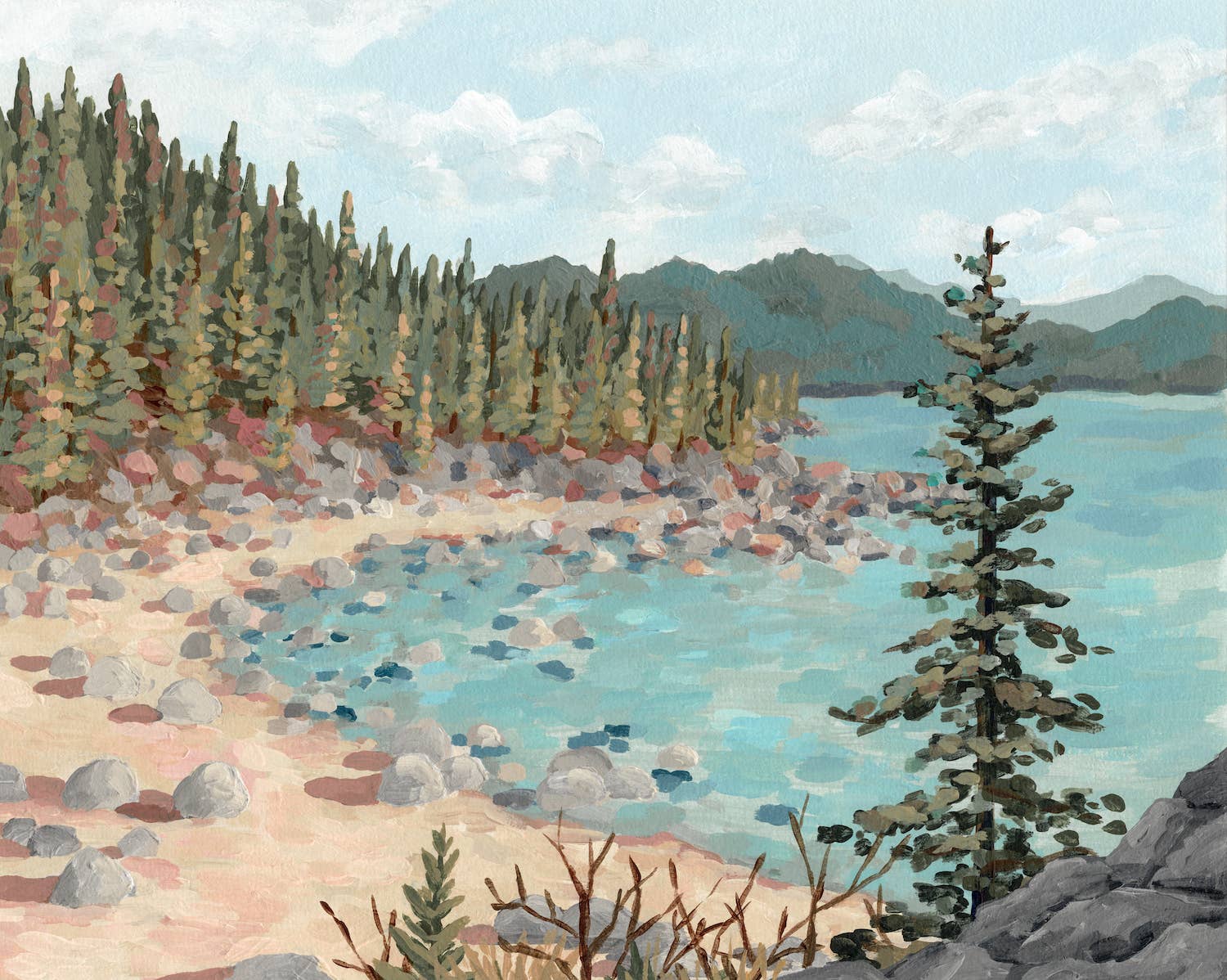 This is a high-quality, matte print of my original painting, "Secret Cove". It is based on Secret Cove in Lake Tahoe, California.