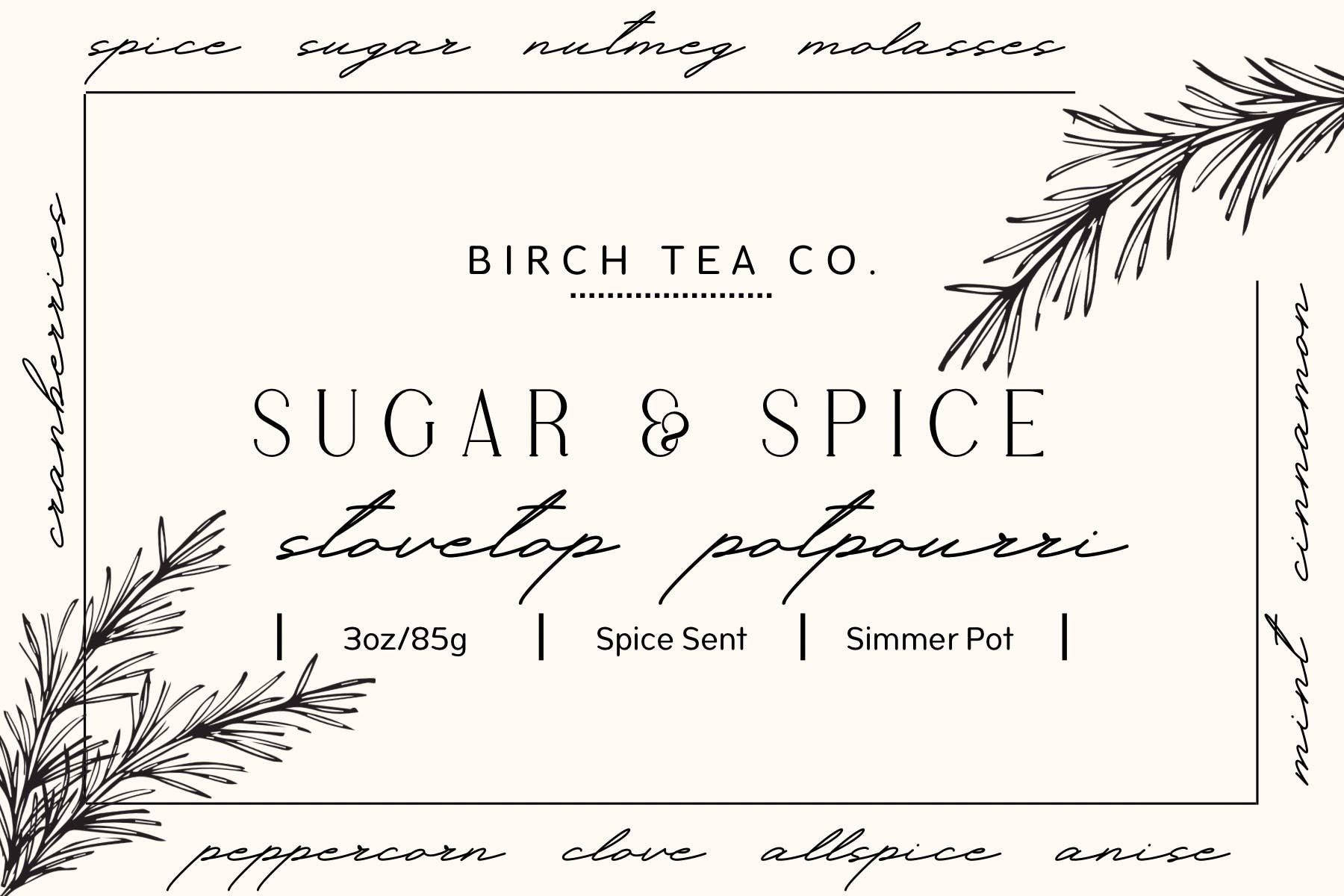 3 ounce mini bag Nostalgic organic home fragrance Stovetop Simmer Pot blend wraps you in a warm hug with the Sweet aroma of the perfect blend of sweet and warm scents! Let the warmth of Vanilla, Clove, Cinnamon, & Anise Star wash over you. While the bursts of Cranberry & Peppercorn cleanse the air! Mix 1 bag of Sugar & Spice with 5 cups of water in a pot on the stove and set at a low heat and let simmer. Can keep in fridge for 1 week and use over and over again to refresh your home with the fresh aroma of Sugar & Spice. or can freeze and rethaw to re-use up to a month! We hope you enjoy your stovetop simmer pot fragrance as much as we do!